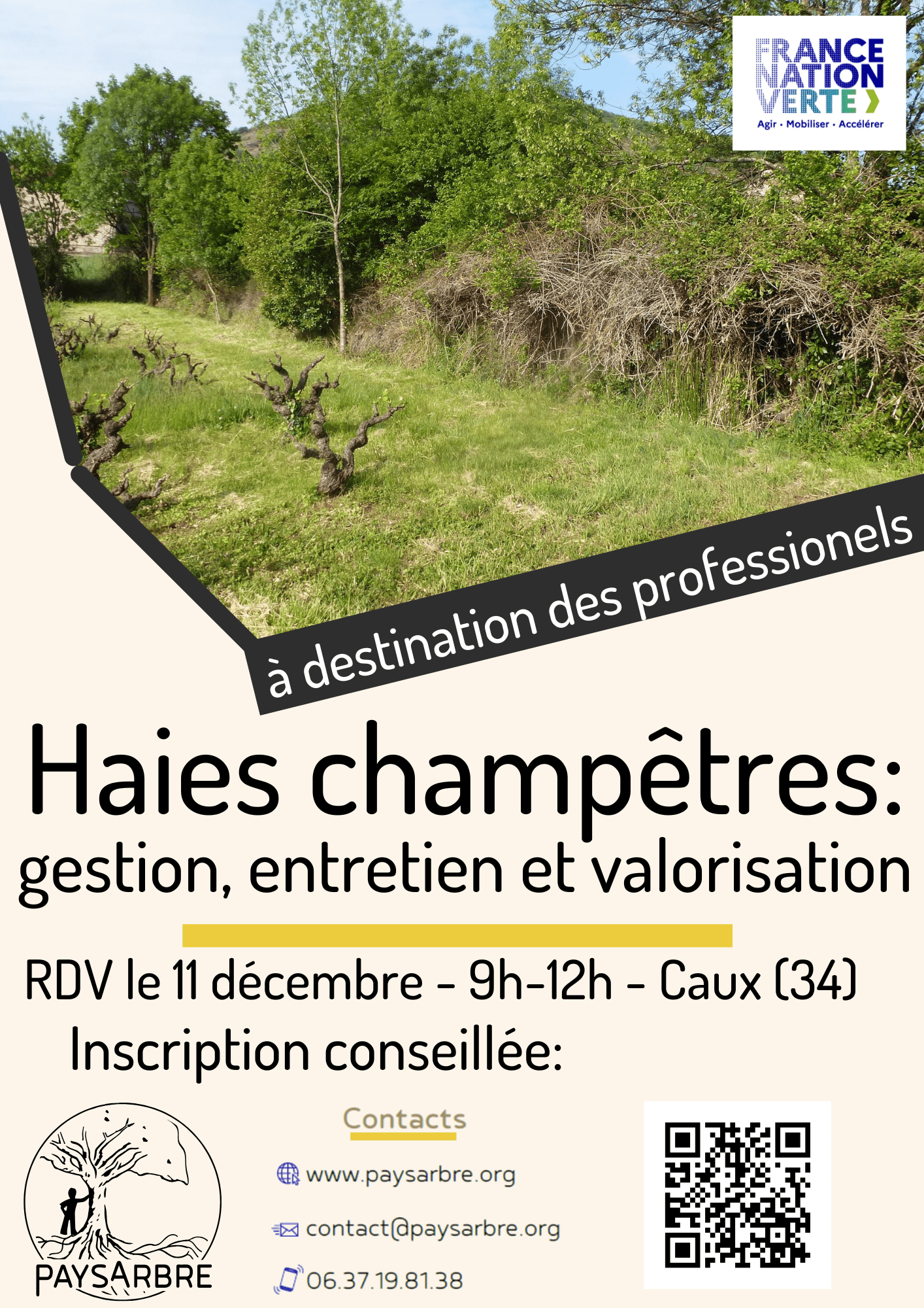 L’association Paysarbre propose une demi-journée à destination des agriculteurs et professionnels pour échanger sur la gestion durable de la haie. Comment valoriser ses haies? Comment intervenir sans blesser? Quelles sont les atouts et services de la haie sur son domaine?